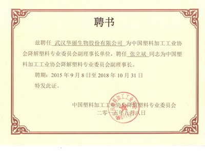 中國(guó)塑料加工行業(yè)協(xié)會(huì)降解塑料專業(yè)委員會(huì)副理事長(zhǎng)單位